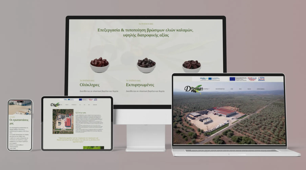 - Ενίσχυση Εταιρικής Εικόνας: Η νέα ιστοσελίδα παρουσιάζει τη Droulias Olive S.A. ως μια σύγχρονη, οργανωμένη και εξωστρεφή επιχείρηση.